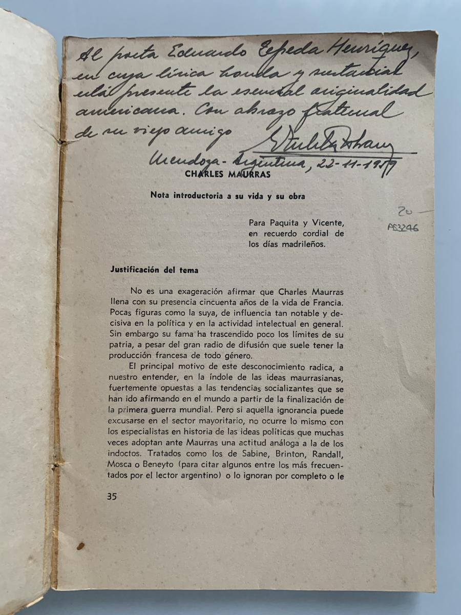 Mendoza, 1957, 105pp, tapa algo defectuosa con señales de uso, dedicada autor Si no se especifica en la descripción anterior, los libros no tienen subrayados, anotaciones, firmas o defectos reseñables. ATENCIÓN: EL ENVÍO GRATUITO ES ORDINARIO SIN NÚMERO DE SEGUIMIENTO, y puede sufrir retrasos de varios días. Le dejarán un aviso en el buzón PARA LA RECOGIDA EN OFICINA. PRIORITARIO/CERTIFICADO CON ENTREGA A DOMICILIO POR SOLO 2,90 euros. |