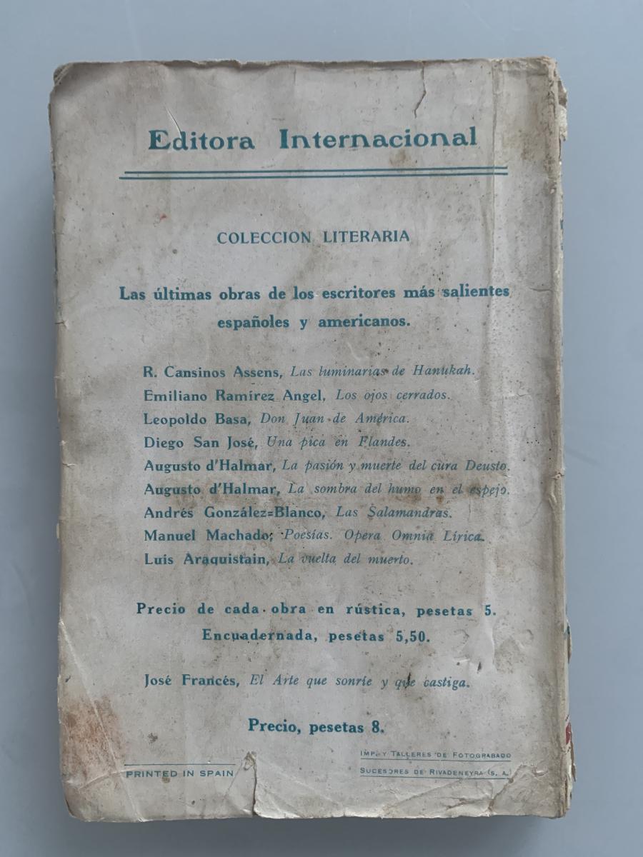 Editora Internacional, 1924, 223pp, tapa blanda, cubierta, lomo y cortes fatigados, por lo demás estado normal
