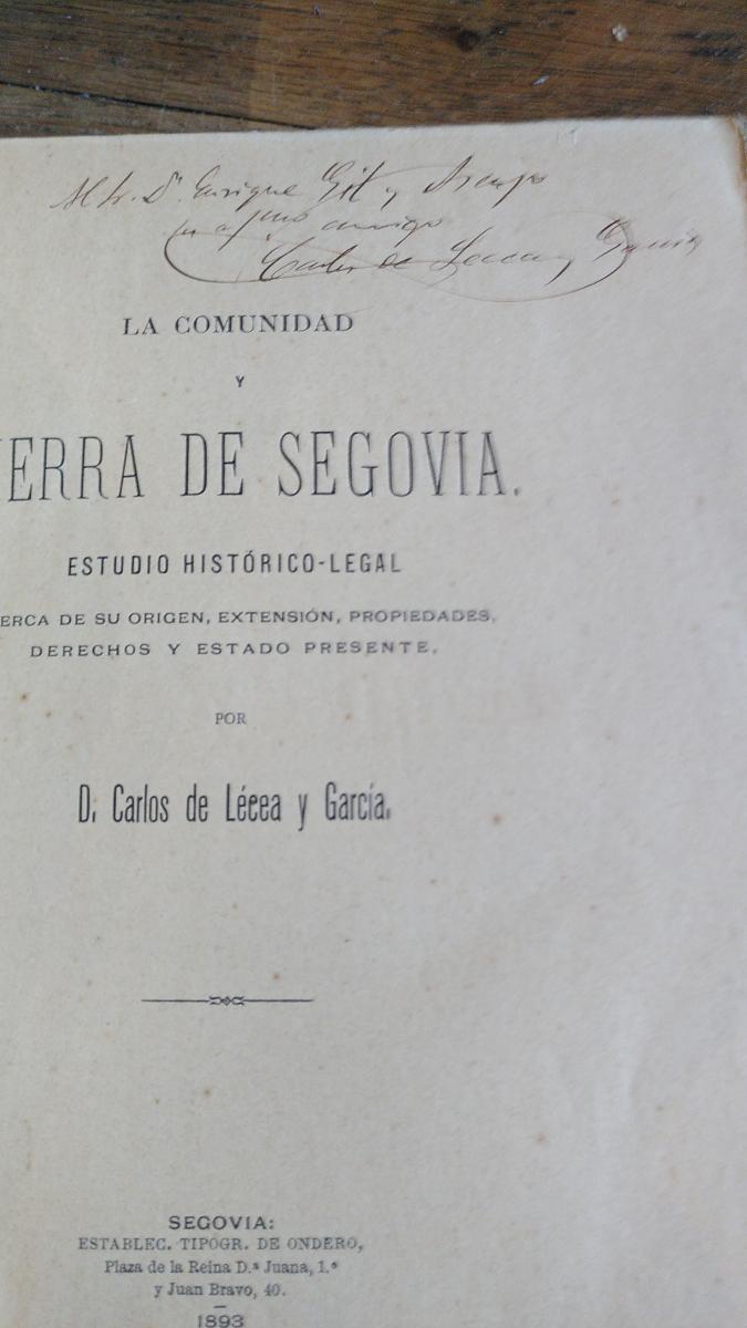 LA COMUNIDAD Y TIERRA DE SEGOVIA. Estudio histórico-legal (dedicado por el autor)