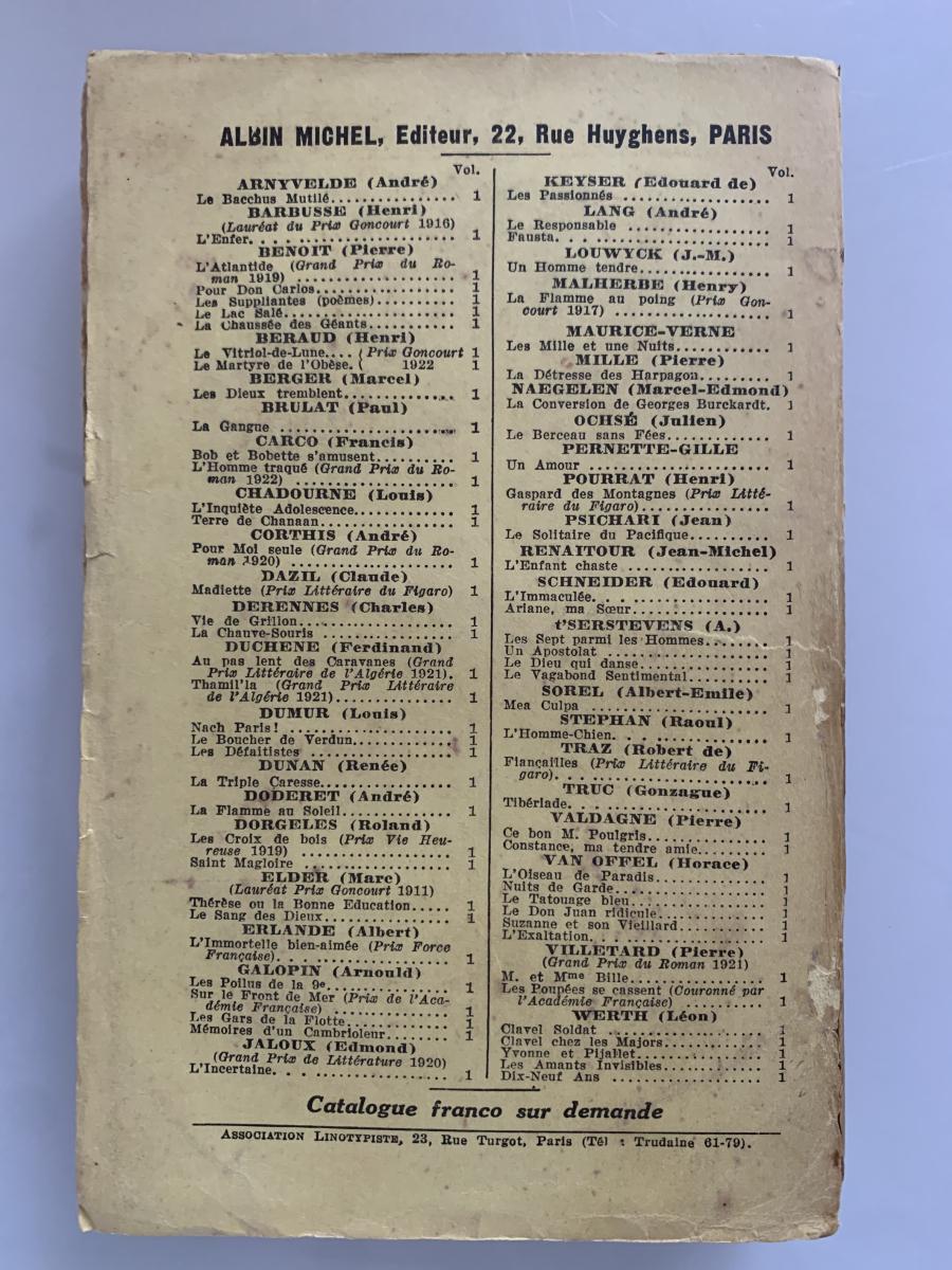 Albin Michel, Éditeur, Francia, 1923, Francés, 311pp, tapa blanda, cubiertas rozadas, por lo demás buen estado Si no se especifica en la descripción anterior, los libros no tienen subrayados, anotaciones, firmas o defectos reseñables. ATENCIÓN: EL ENVÍO GRATUITO ES ORDINARIO SIN NÚMERO DE SEGUIMIENTO, y puede sufrir retrasos de varios días. Le dejarán un aviso en el buzón PARA LA RECOGIDA EN OFICINA. PRIORITARIO/CERTIFICADO CON ENTREGA A DOMICILIO POR SOLO 2,90 euros. |