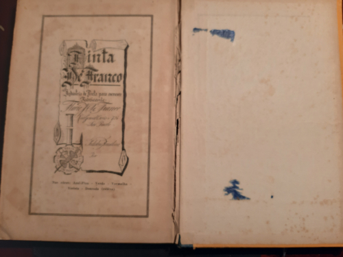 Sao Paulo 1945, 186 pp, áginas amarillentas, señales de uso en la cubierta de tapa dura, manchas en la contraportada por dentro y por fuera, en la página 17 falta un trozo de la parte de arriba derecha, que no afecta a la lectura. ver fotos. Si no se especifica en la descripción anterior, los libros no tienen subrayados, anotaciones, firmas o defectos reseñables. ATENCIÓN: EL ENVÍO GRATUITO ES ORDINARIO SIN NÚMERO DE SEGUIMIENTO, y puede sufrir retrasos de varios días. Le dejarán un aviso en el buzón PARA LA RECOGIDA EN OFICINA. PRIORITARIO/CERTIFICADO CON ENTREGA A DOMICILIO POR SOLO 2,90 euros. |