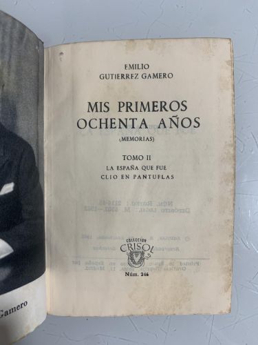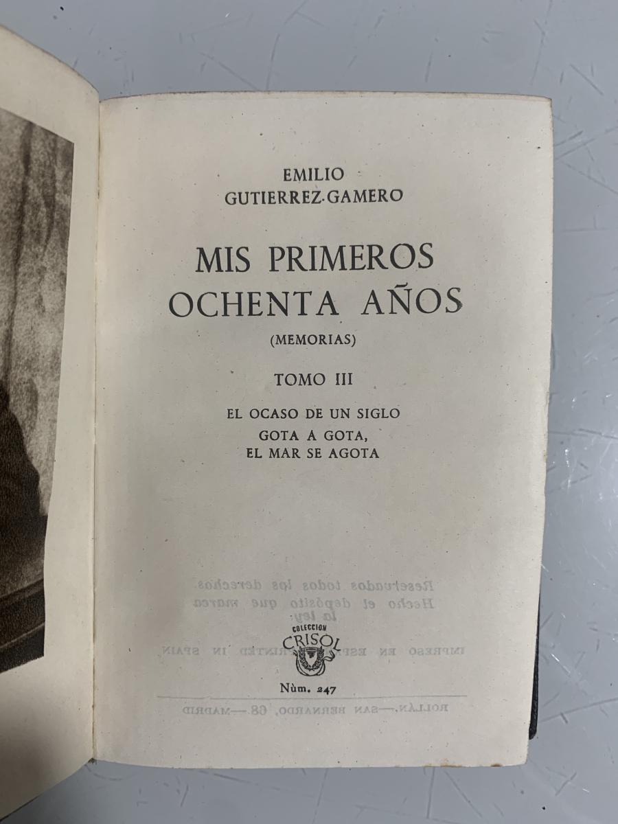M. Aguilar Editor, Madrid, 1948, 717pp (tomo I. Lo que me dejé en el tintero), 471pp (tomo II. La España que fue), 495pp (tomo III. El ocaso de un siglo), tapa dura, cubierta holandesa, lomo rozado en tomo I, firma del anterior propietario, por lo demás muy buen estado Si no se especifica en la descripción anterior, los libros no tienen subrayados, anotaciones, firmas o defectos reseñables. ATENCIÓN: EL ENVÍO GRATUITO ES ORDINARIO SIN NÚMERO DE SEGUIMIENTO, y puede sufrir retrasos de varios días. Le dejarán un aviso en el buzón PARA LA RECOGIDA EN OFICINA. PRIORITARIO/CERTIFICADO CON ENTREGA A DOMICILIO POR SOLO 2,90 euros. |